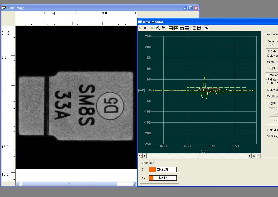 C-SAM利用声阻抗不匹配原理进行成像。超声波在固体介质中传播时,遇到不同材料的界面会产生反射和透射。当界面存在分层时,分层间隙为空气,固体-气体界面的声阻抗差异极大,超声波发生接近100%的全反射,在图像上呈现高亮区域。通过分析反射信号的强度、位置和深度,可以精确判断缺陷的大小、形态和所在层面。